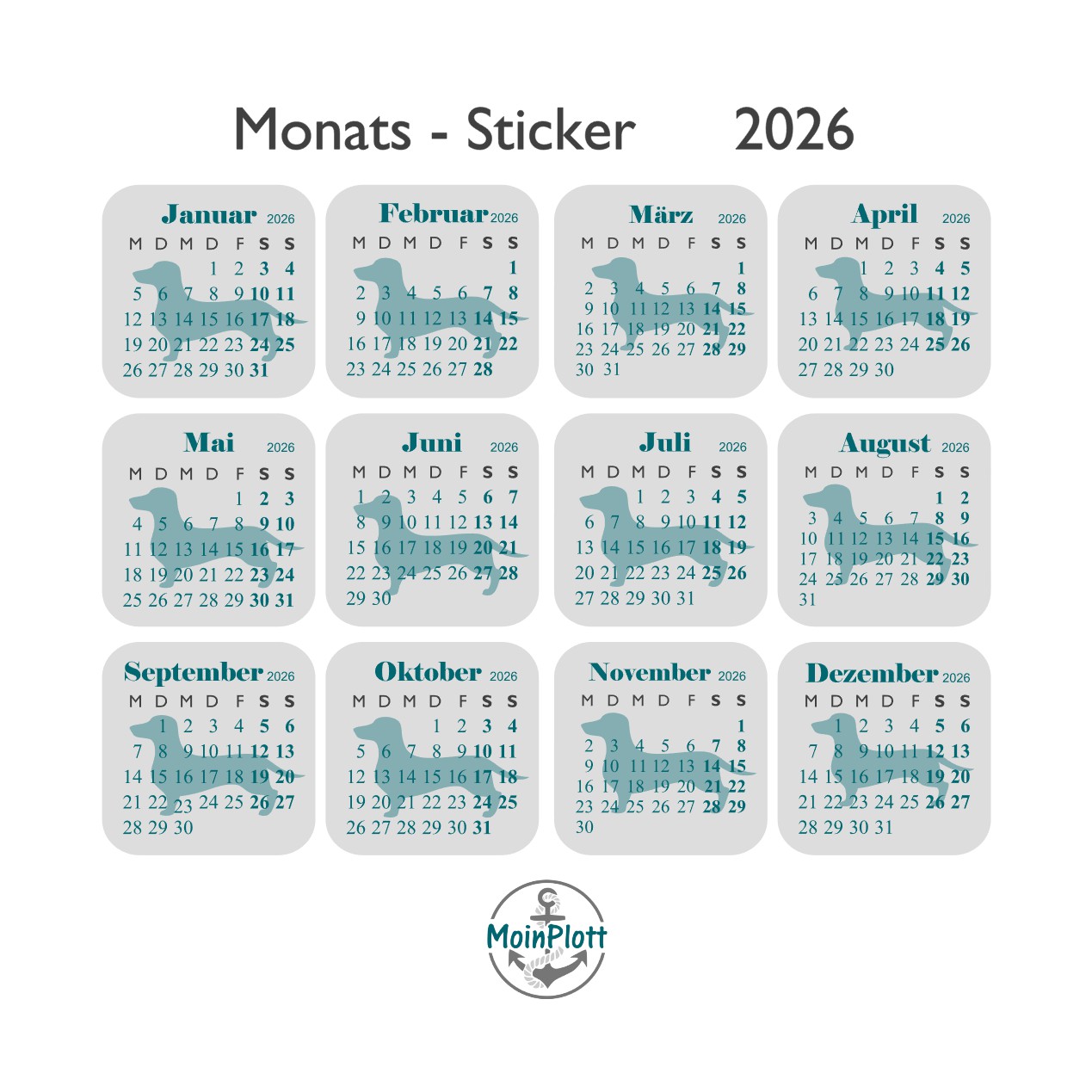 Kalender-Sticker 2026 Dackel-Edition Grau/Petrol PDF